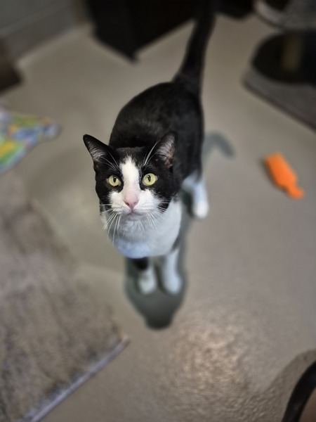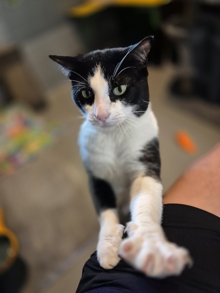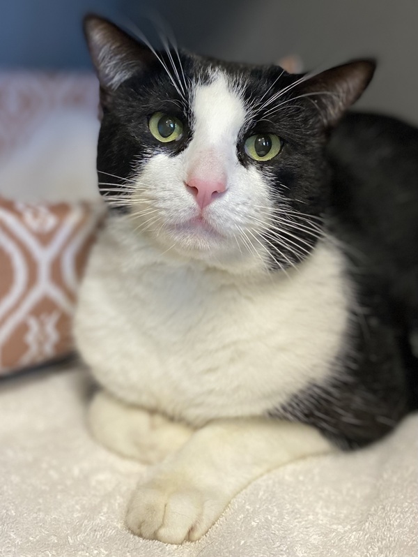 Gus is a mature gentleman with a heart full of affection and a coat of classic black and white charm. At 5 years and 8 months old, he's past the kitten chaos and fully into his chill era-ready to spend his days lounging, loving, and soaking up attention.