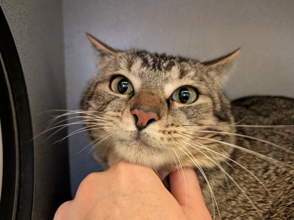 Jimmy is a strikingly handsome tabby boy with soulful eyes and a heart that's quietly waiting to be understood. Shelter life has been a bit much for him, and he's longing for a peaceful home where he can stretch out in sunny spots and enjoy the quiet company of his people. Though shy at first, Jimmy has all the potential to blossom into a devoted companion, he just asks for time, patience, and a gentle rhythm that lets him settle at his own pace. He's best suited to experienced adopters who are familiar with feline behaviour, especially the needs of shy cats. Jimmy may also do well with another cat, given slow and thoughtful introductions. If you're ready to offer Jimmy the calm, loving home he's been dreaming of, he promises to reward you with quiet loyalty and the kind of rare companionship that warms the heart.