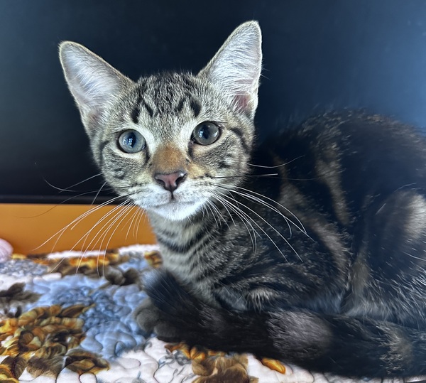 Zeppelin is a spirited young male kitten with a playful streak and a curious mind. He loves to explore, chase after toys, and discover new adventures, but he also has a soft side that shines when he curls up for cuddles. With his bright energy and affectionate nature, Zeppelin is ready to grow alongside a family who can guide him with patience and care. He will thrive in a loving home where he can feel secure, learn the rhythms of daily life, and share his warmth with those around him. Adopting Zeppelin means welcoming a lively companion who will bring joy, mischief, and endless affection into your world.