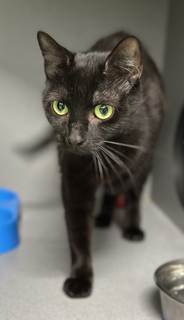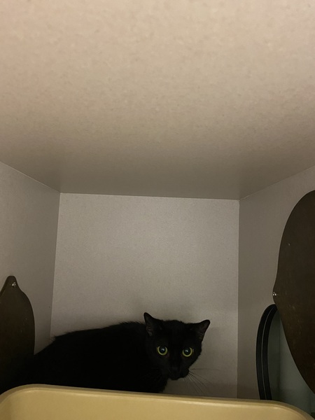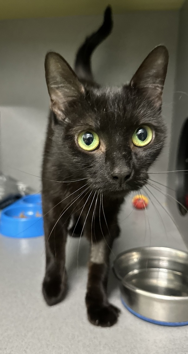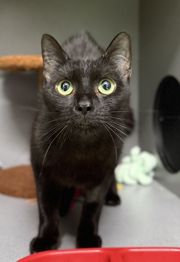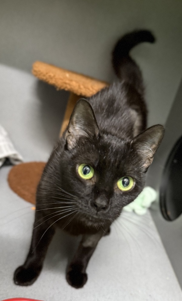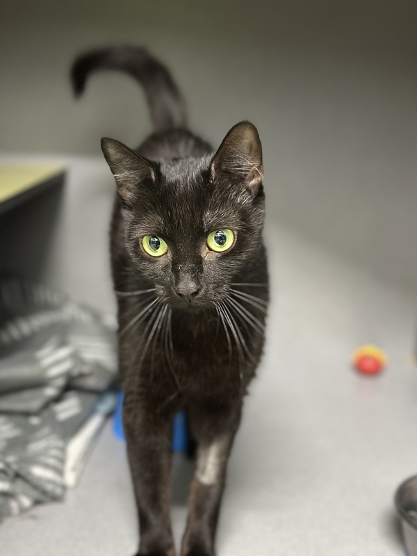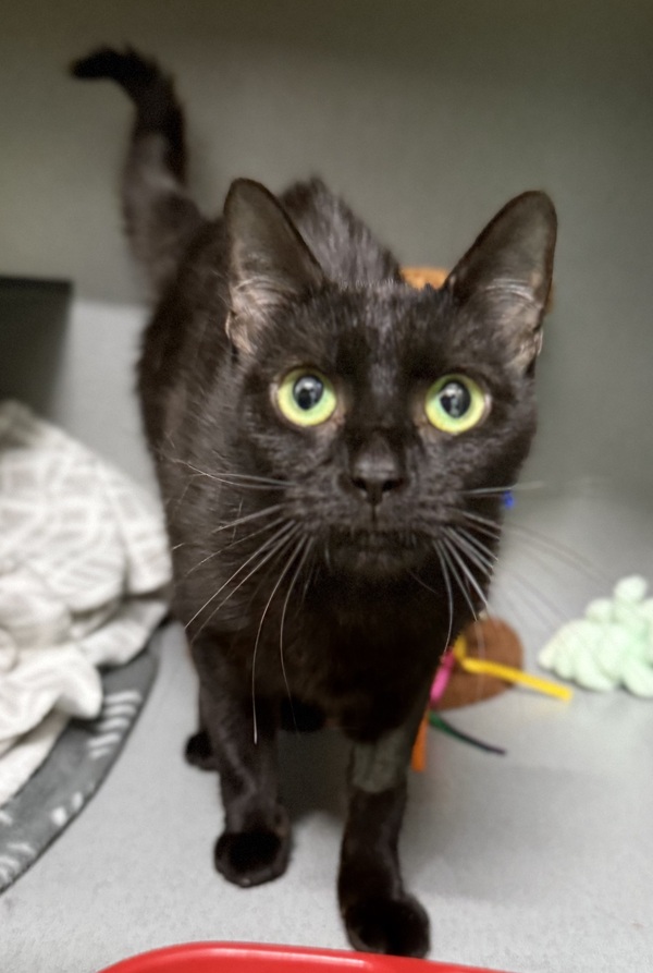 Faye thrives when she has access to plenty of safe spaces, including scratch posts, cat trees, hides like cardboard boxes or igloos, and shelves or dressers at both high and low levels. She is best suited to a calm, quiet environment with a gentle owner who can read her body language and give her space when needed. Teens familiar with cats and their cues would be ideal.