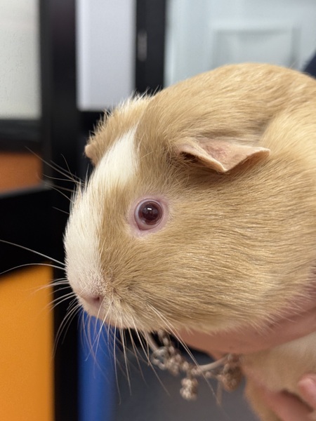 Meet Raksha, a male smooth haired Guinea Pig with an apricot coat.