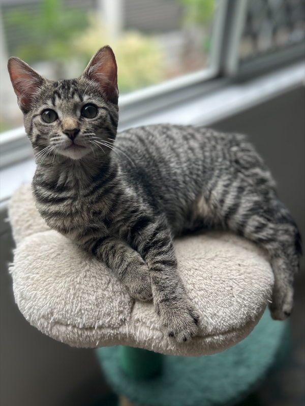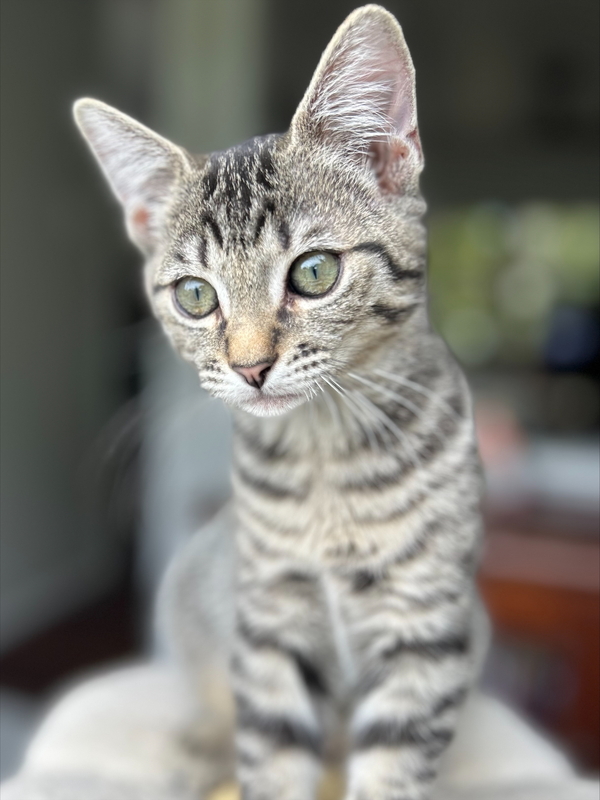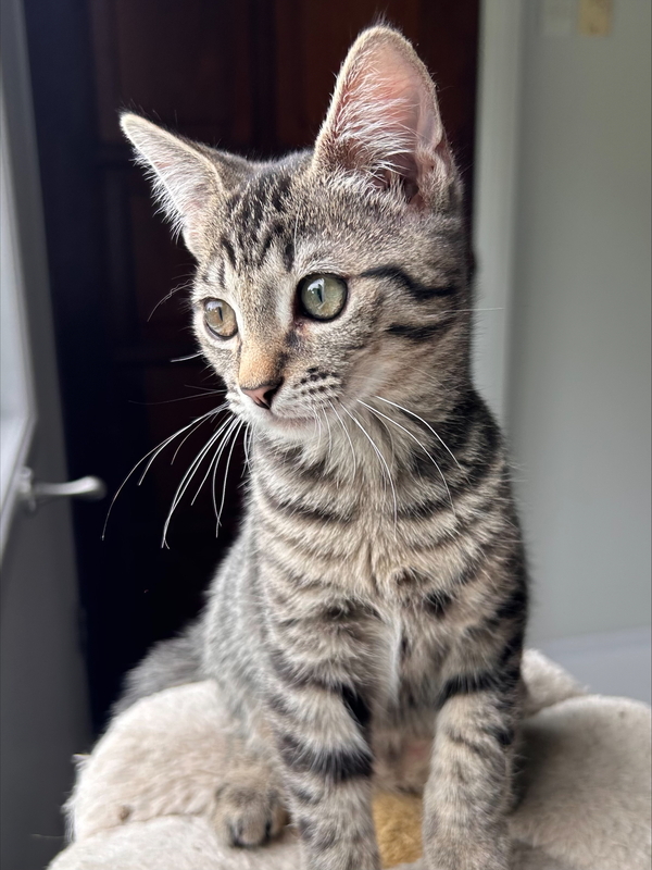 Hi! I'm Aelin, the princess of my siblings! I'm the type of girl who deserves to be spoilt and I'm not afraid to tell you about it! I'm an expert at sneak attacks, when you're least expecting it, I'll smack your legs and then run so fast you can't even see me! And I'm not afraid to give you a smack of encouraging if you're taking too long to prepare my food, like I said I'm a princess who deserves only the best please! I love running around with my siblings and then cuddling up with them after terrorizing everyone. Even though I'm an independent girly, I do love a good chin scratch and snuggle, and will come up to you for soft pats. I spent some time in foster with older cats and dogs, I was a respectful of the cats but wasn't afraid to tell the dogs off for getting too close, so would prefer a home with no dogs or dogs that will give me my space. So, if you're looking for a spoilt queen to bring joy and a touch of sass to your home, I'm your girl!