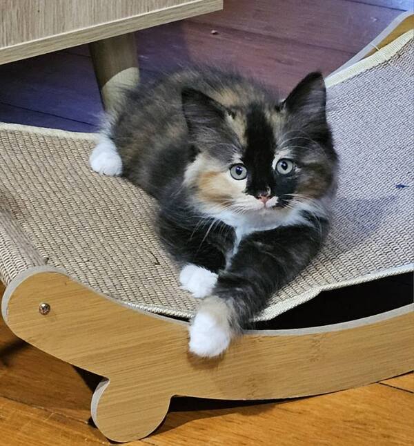 Minsky is a delightful young kitten with a soft heart and an even softer coat. She absolutely adores cuddles and will happily curl up in your lap for as long as you'll let her. Whether you're relaxing on the couch or settling in for a quiet evening, Minsky is always ready to snuggle in close.