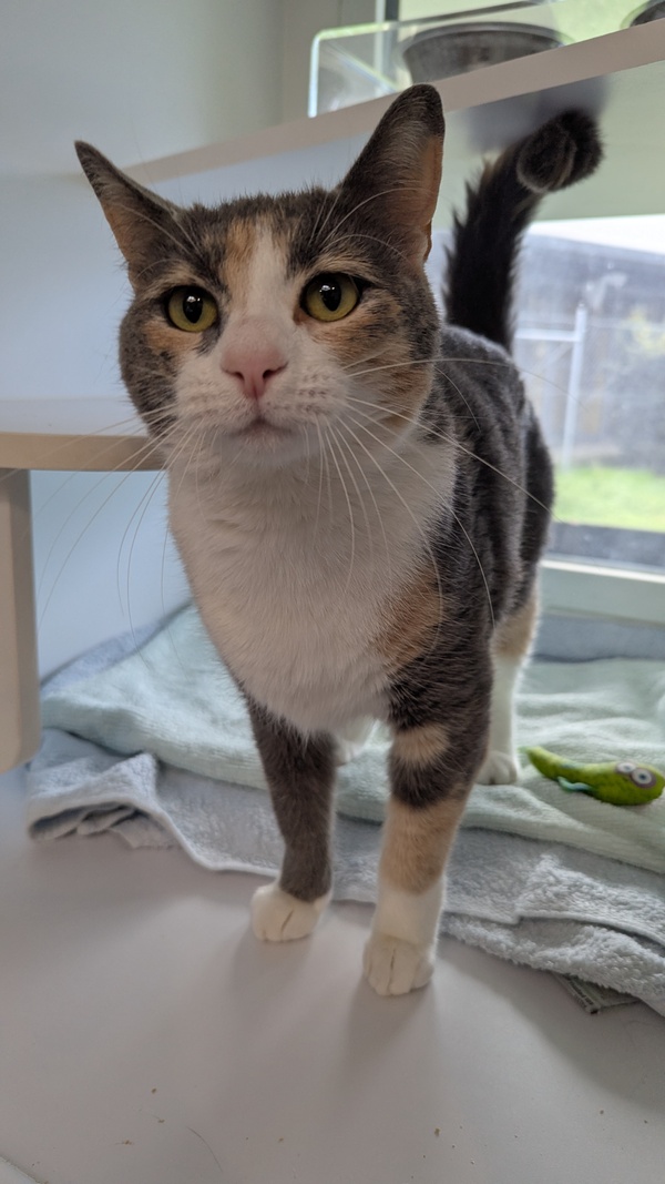 Hello, I'm Jasmine! Here in the shelter, I've found comfort, but I dream of a cozy home where I can share all my love. I adore cuddling and always seek out friendly laps or gentle hands for some affection. I'm quite the companion, always ready to listen and offer purrs of comfort after a long day. If you're looking for a sweet, friendly, and affectionate friend, I'm your cat! Adopting me means gaining a loyal and loving family member who will cherish every moment with you.