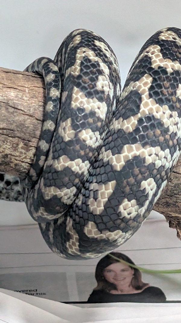 Hi my name is Dorothy and I'm a stunning Murray-Darling Carpet Python. My species, as my name suggests, live along the Murray-Darling Basin in central and western New South Wales and Victoria, reaching into southern Queensland.
