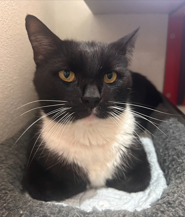 Meow! Pleased to meet you! My name is Tyler! I came into care with my brother and my mother after our humans fell on hard times. I am a shy boy at first but very sweet if given the opportunity. I like chin scratches and pets behind the ears. You probably won't see me at first when you come to the shlter as I will be in one of my hiding places but gentle coaxing and some petting and I will come out. I would love a quiet home that can help me come out of my shell. I don't need to be rehomed with my family, I am old enough to leave the nest now. I could probably live with another cat as long as we are introduced correctly, but a home with no kids or calm cat savvy kids is a must.