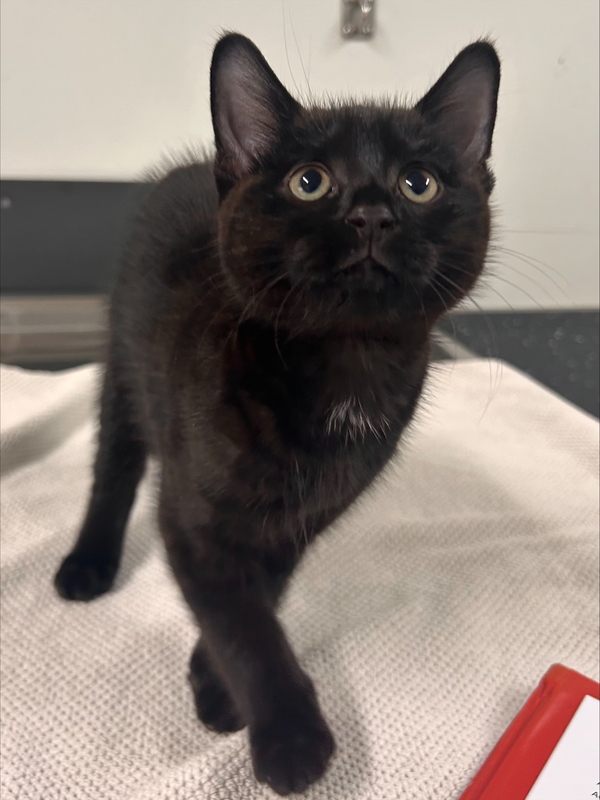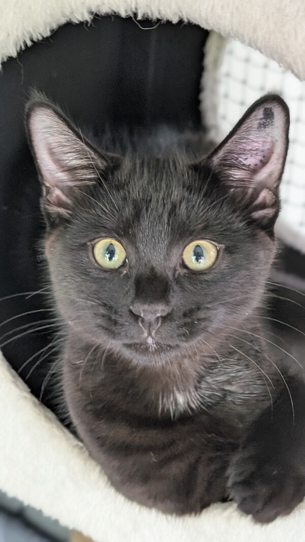 Hey there! My name is Peep. I can be a vocal kitty at times especially when I am hungry. I can be a little reserved at first and it takes me some time to warm up to you but once I feel comfy I am an affectionate and playful kitty cat. I love my brother and I tolerate the other kitten housemates though I do show my distaste for their nonsense a lot. If you already have a laid back cat I should get on with them fine, just give me time. I think a house with cat savvy kids (or no kids) will be great for me. Once I adjust to my home I will be a silly and rambunctious kitten just you wait!