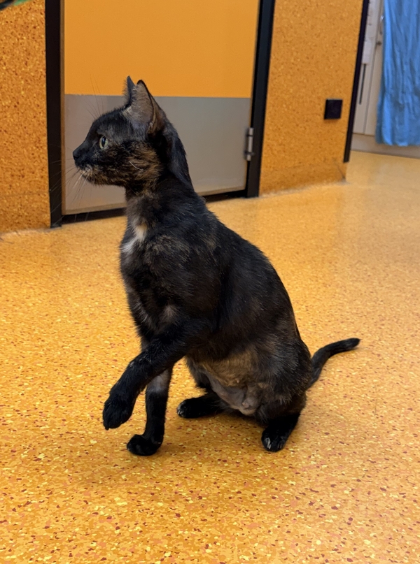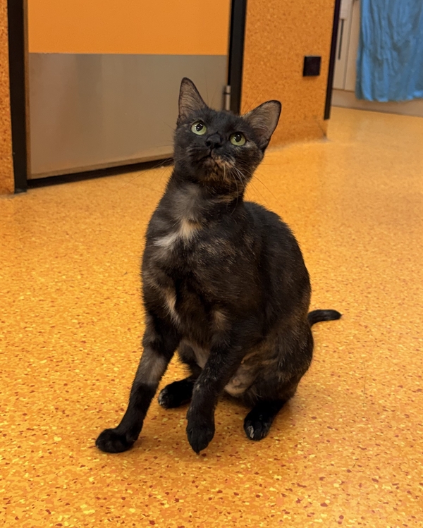 My name matches my mood-I'm absolutely dizzy with excitement at the thought of finding a forever home to call my own! I'm an easy-going, affectionate kitty who loves the simple joys in life: cozy evening dinners, lounging on the couch, and scooting around the house for a bit of exercise (usually in pursuit of a very sneaky imaginary butterfly or dust mite).