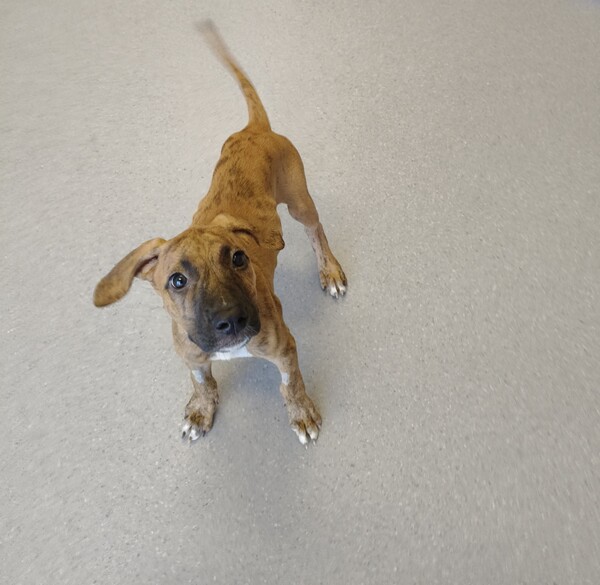 Hi! I'm Khloe, a bubbly puppy full of life! Each day, I explore my surroundings with a wagging tail, eager to discover new toys and make friends. I love playing games, and my goofy antics will surely make you laugh. I'm also very friendly, always ready for a cuddle or a fun adventure. I dream of finding a forever home where I can share all my love and curiosity. If you're looking for a loyal companion to add joy and laughter to your life, I'm the perfect match!