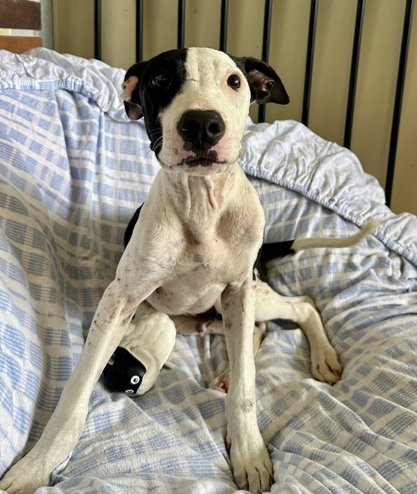He's still learning that the world is safe, but treats are his guiding light - offer him one, and you'll see his whole body do a hopeful little dance. With a bit of patience, he melts into a loving, affectionate pup who just wants to be close.