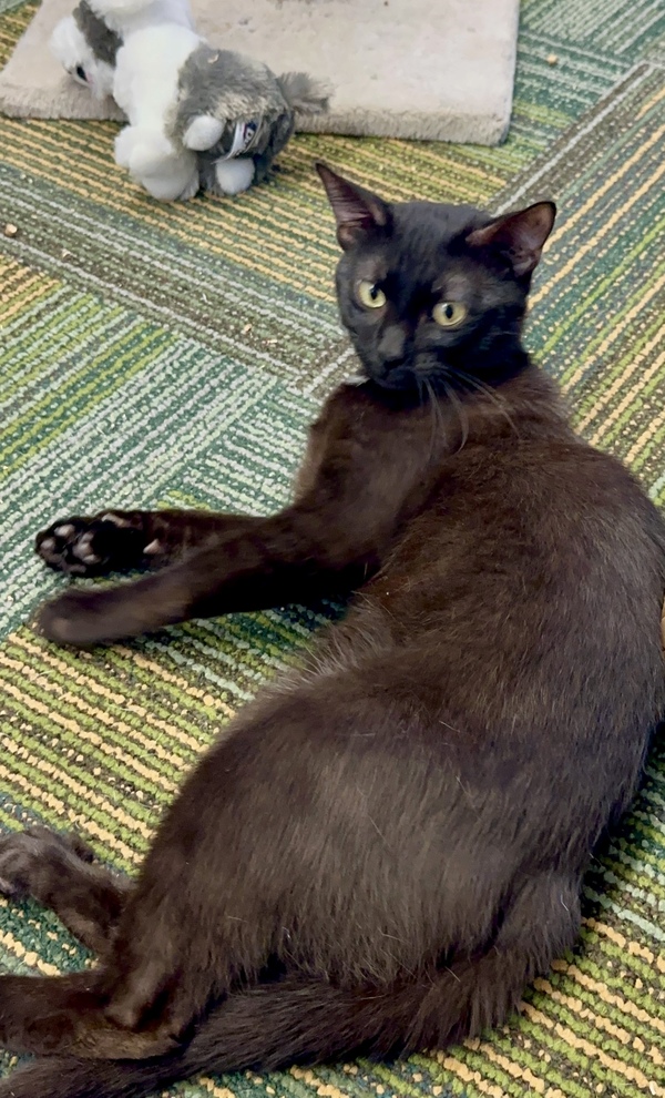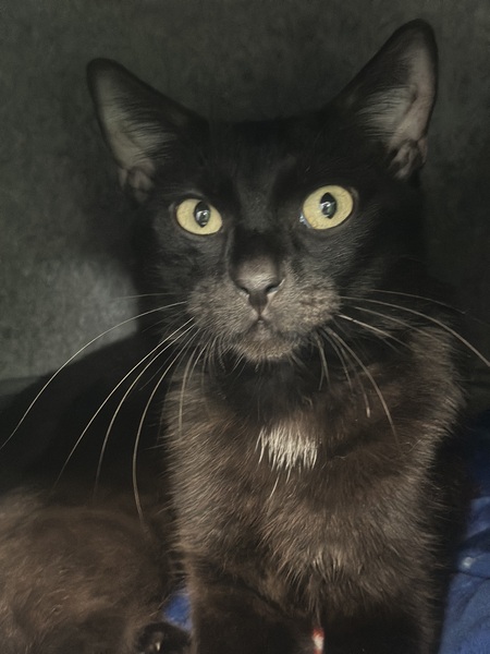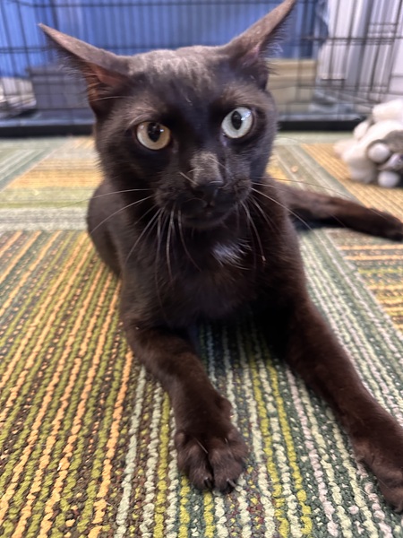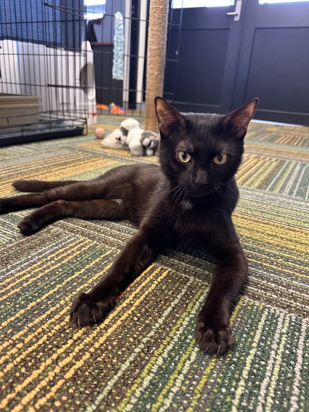 He can be timid in new environments, so someone who understands feline body language and knows when to give him space will help him blossom into his true self. Pantha is cat‑social-he arrived with another cat and has handled brief cat introductions calmly-though his preferences and may continue to develop as he gains confidence. He may also do well with a calm, respectful dog if interactions are monitored. Teens and older children who can read his cues would be a great fit for this sweet, sensitive boy.