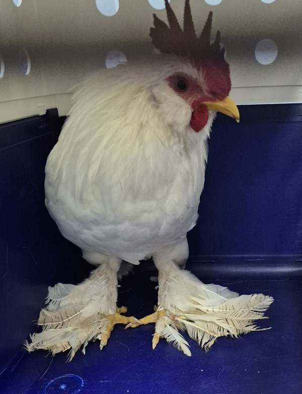 Stuart Little the rooster is a proud and lively companion who brings character to any flock. He is a young adult with a striking presence, full of confidence and curiosity. Each morning he greets the day with a strong crow, making him a natural alarm clock and a cheerful addition to the farmyard. Stuart Little is protective without being aggressive, keeping a watchful eye over hens while maintaining a gentle temperament. He thrives in a secure coop with space to roam and enjoys the company of a small flock. With proper care, fresh food, clean water, and regular attention, he will flourish and reward his new family with charm and personality. Adopting Stuart Little means welcoming not just a rooster, but a spirited guardian who adds warmth and energy to daily life.