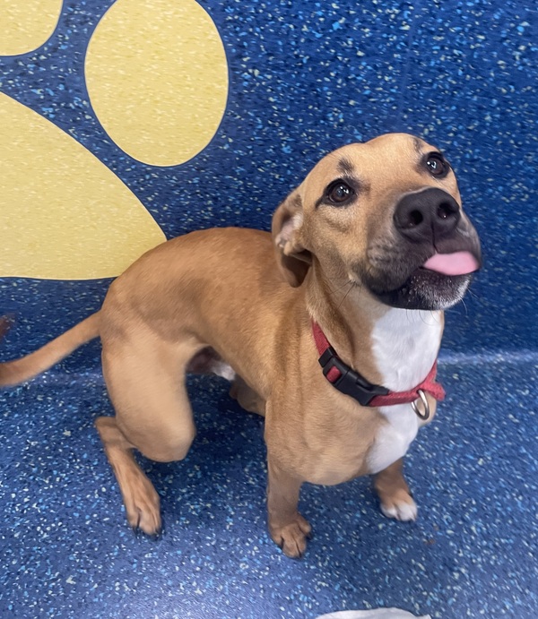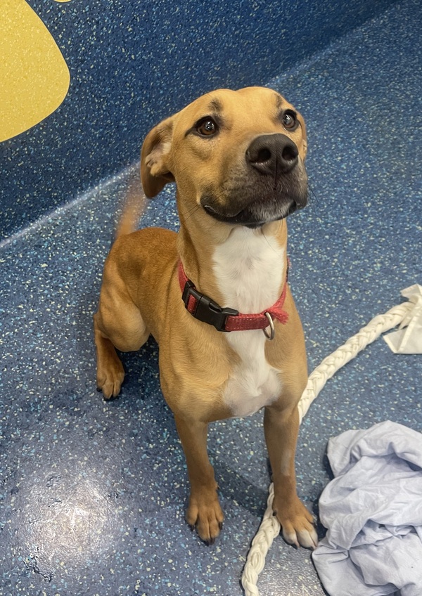 He is a smart boy who enjoys enrichment and has shown a strong interest in wobblers and snuffle mats. Feeding his daily meals through enrichment activities is recommended to keep his mind active and engaged. Franklin can be worried by close handling and restraint, occasionally resulting in nervous wees, so he will need continued work on touch consent and gentle, positive reinforcement training. He already knows how to sit and shake and would love a family willing to continue building on his training.