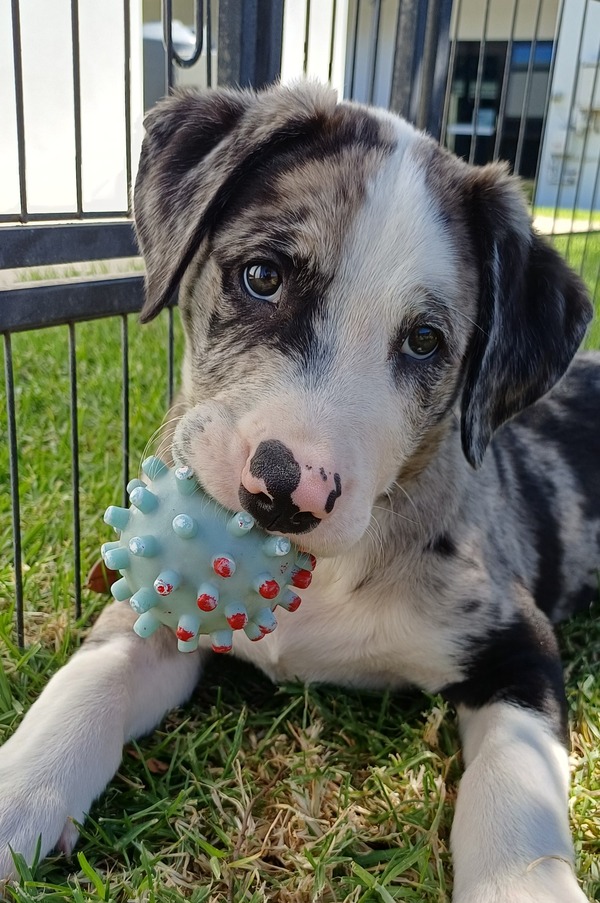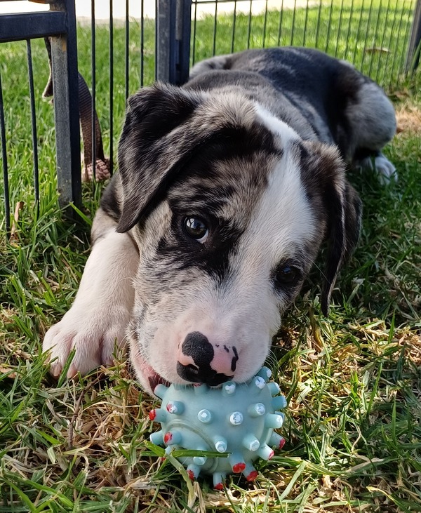 Doc is a sweet-natured little boy who loves toys, soft snuggles, and discovering new things. Whether he's investigating crinkly sounds, chasing a ball, or curling up in your lap for a snooze, he does everything with a soft, friendly charm.