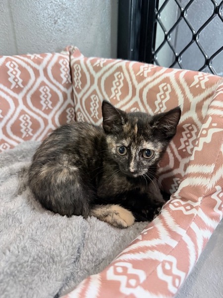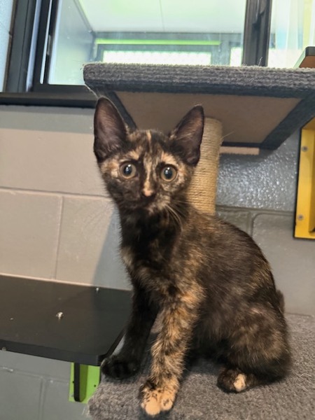 Maggie is a bright and sweet little kitten with a gentle curiosity that makes her instantly endearing. At around 10 weeks old, she's discovering the world one tiny adventure at a time-every toy, shadow, and new sound is an opportunity for exploration.