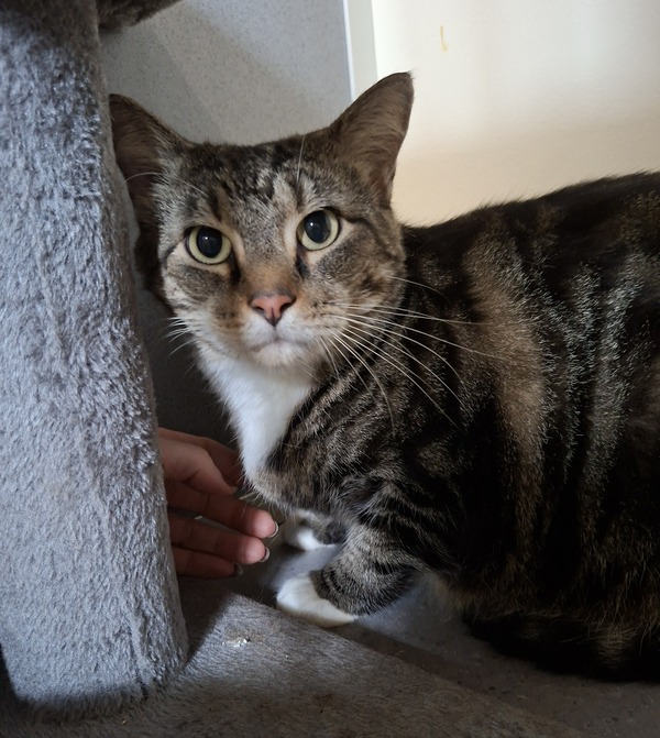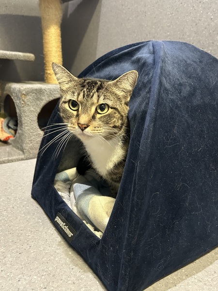 Hello, I'm Poppy! I love finding cozy nooks where I can watch the world go by and indulge in some serious relaxation. My days are filled with gentle explorations and plenty of cuddles. I might be a bit shy at first, but give me a little time and I'll be your loyal companion, purring contentedly by your side. If you're looking for a calm, loving friend to share quiet moments with, I'm the perfect match. Let's enjoy the simple pleasures of life together!