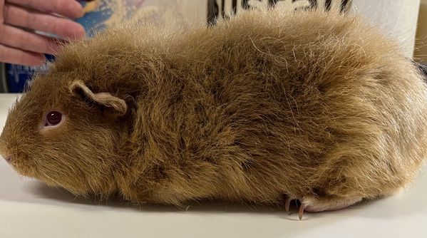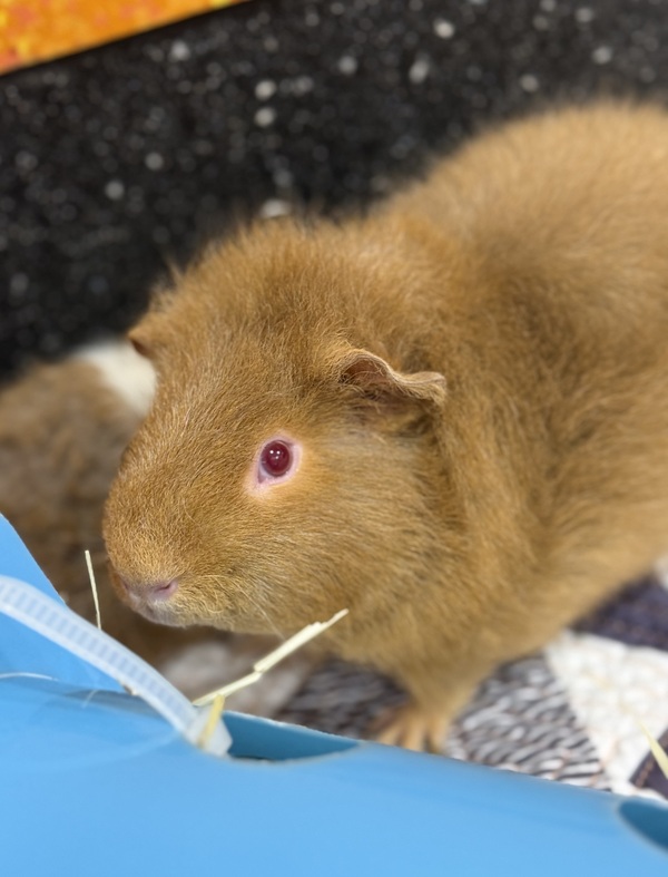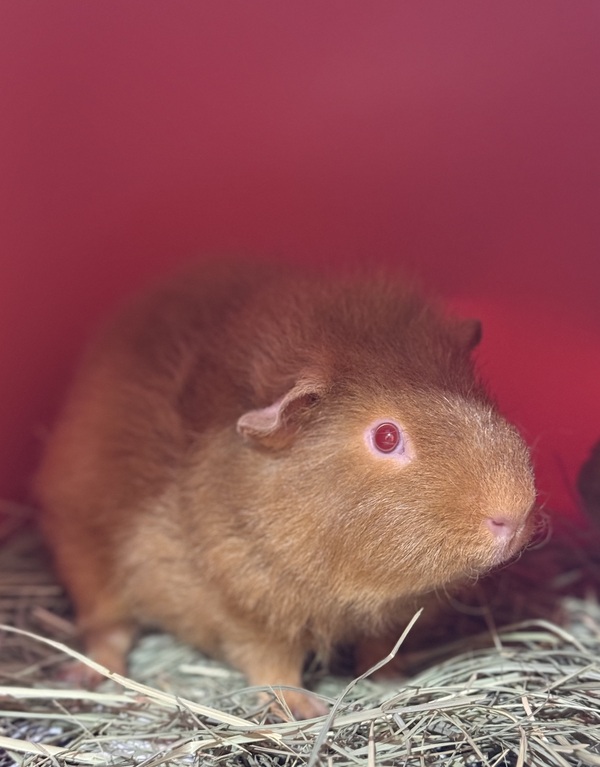 Fudge is happiest when he has space to zoom around, hay to burrow in, and humans who appreciate his gentle, affectionate nature. He'd love a home that understands guinea pig companionship needs-whether that's joining another friendly male piggie or pairing with a calm neutered female.