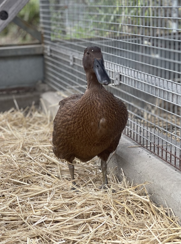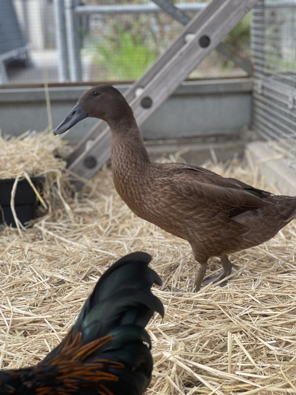Honey is a social duck and gets along with other poultry, and is friendly with people.