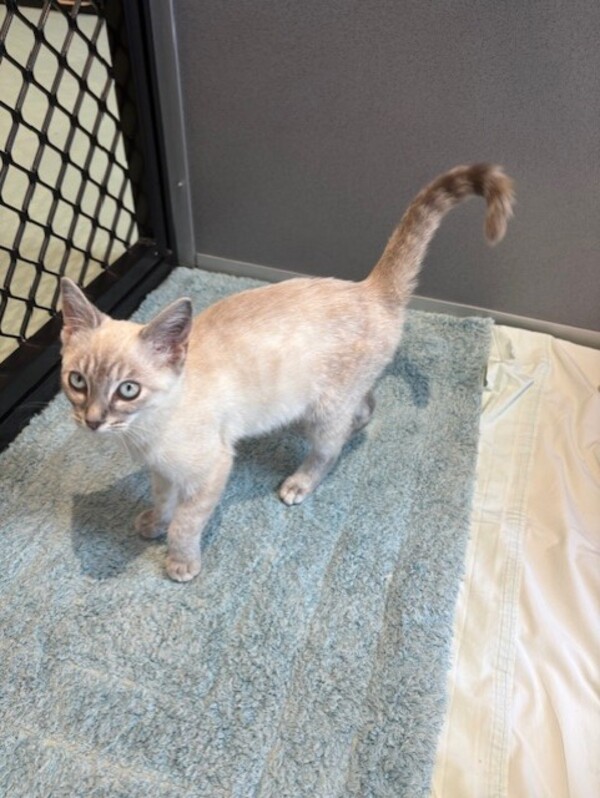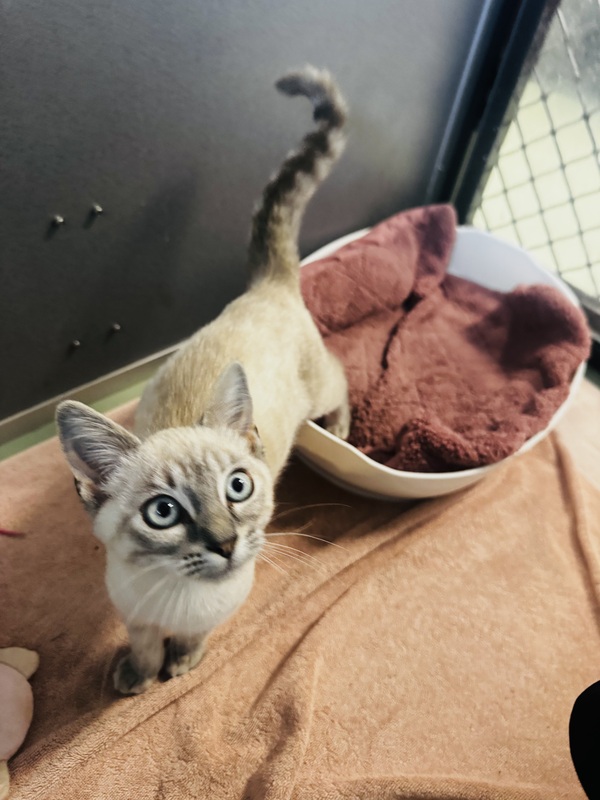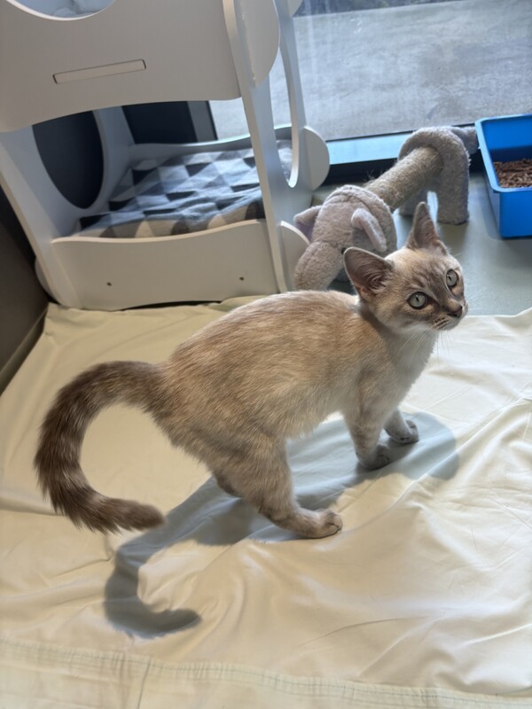 Meet this bright, affectionate little girl who is ready to bring joy into her forever home. At just 11 weeks old, she's already showing a wonderfully friendly, people‑oriented personality. She loves being around humans, happily trots over for attention, and purrs the moment she's picked up.