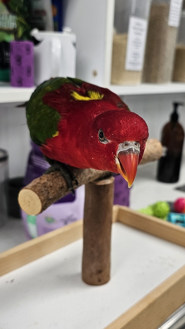 Meet Mushu, a Chattering Lory and a definite favourite amongst the care staff!
