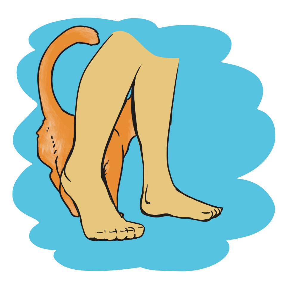Twirling around your legs and rubbing their faces, cheeks and gums on you is a cat’s way of sharing their scent, marking you as part of their family. Cats use scent to identify each other, recognise family members and mark their ‘safe zones’ within an environment.